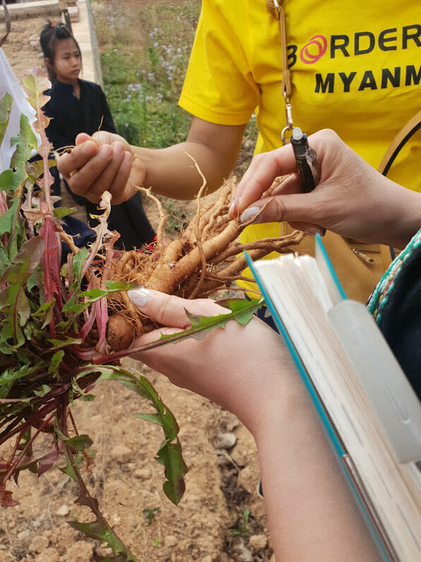 その場で収穫した「たんぽぽ」。根を乾燥させて、ミルクアップブレンドに使用しています。