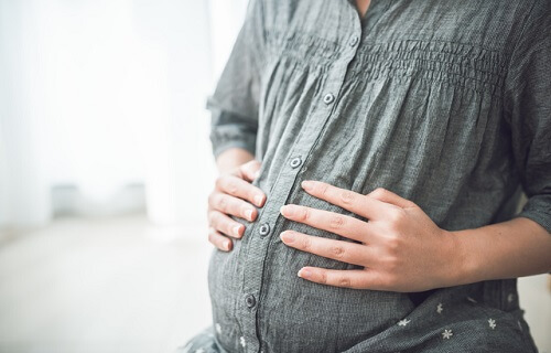 妊婦さんのお腹を触る